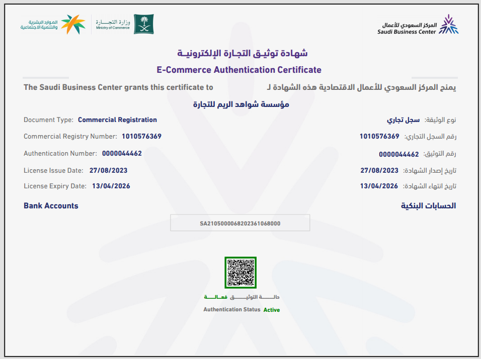 المركز السعودي للأعمال ( شهادة توثيق التجارة الإلكترونية )